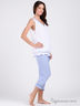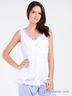 Детали: округлый вырез, без рукавов, низ посажен на тонкую резинку, спереди присборено, полочка украшена стразами и декоративным элементом, в комплекте прямые брюки на резинке