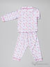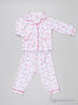 Великолепная пижама из мягкого неэластичного трикотажа с ярким веселым печатным рисунком. Рубашка с отложным воротником с маленькими лацканами. Длинные прямые рукава с манжетами. Застежка на пуговицы. Два накладных кармана. Брюки с поясом на резинке. Длинные прямые брючины с манжетами. Пижама декорирована яркой окантовкой.