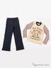 Пижама состоит из двух предметов: кофта с длинными рукавами и округлым вырезом горловины и штаны на эластичном поясе. Спереди кофта декорирована принтом. Отличный вариант на каждый день.