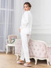 Пижама классического кроя из приятного к телу шелка Армани. Рубашка с остроугольными лацканами и пуговицами вдоль изделия. Прямые брюки на резинке с карманами в боковых швах.