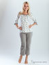 Торговый бренд "Дюма" - это стильная домашняя одежда, выполненная из высококачественного материала самых модных расцветок. В одежде этой марки Вы будете чувствовать себя легко и комфортно! Параметры изделия для размера S: обхват груди 84 см, длина по спинке 56 см, длина рукава 40см,обхват бедер 86 см, длина по боковому шву брюк 77 см, длина шагового шва 57 см.