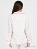 Детали: отложной воротник, застежка на пуговицы, длинный прямой рукав с манжетой, один нагрудный карман, брюки на резинке