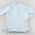 Кофта прямого силуэта с округлым вырезом горловины. Застежка на три пуговицы. Края манжет и нижняя часть изделия обработаны оверлоком. Изделие украшено атласными ленточками и тесьмой.