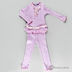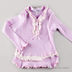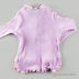 Кофта прямого силуэта. Застежка на две пуговицы. Края манжет и нижняя часть изделия обработаны оверлоком. Планка-застежка декорирована контрастной оборкой и бантиком.