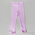 Брюки прямого силуэта. В пояс вставлена резинка. Нижняя часть брючин обработана оверлоком и украшена бантиками.