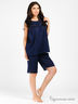 Легкая и нежная пижама из батиста. Рубашка прямого покроя, вырез каре. Кокетка украшена кружевом. Планка-застежка на пуговицах. Брюки короткие, сверху посажены на резинку.