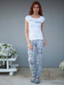 Пижама с брюками. На брюках забавный принт. Изделия выполнены из качественного материала. Футболка с короткими рукавами, брюки на эластичном поясе. Отличный вариант на каждый день.