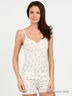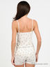 Детали: тонкие бретели регулируются по длине; шорты посажены на резинку; пижама декорирована оригинальным принтом и кружевными оборками