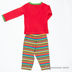 Брюки прямого силуэта в яркую полоску с вшитой в пояс резинкой.