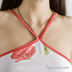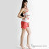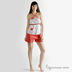 Короткая и стильная пижама на лето. Красные короткие шорты и контрастный топ на брителях с принтом "маки".