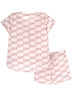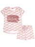 Пижама детская состоит из укороченных шортиков и футболки с коротким рукавом. В футболке укороченный перед, спереди принт. Изготовлена пижама из кулирки с лайкрой.