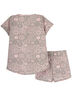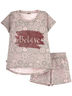Пижама детская состоит из укороченных шортиков и футболки с коротким рукавом. В футболке укороченный перед, спереди принт. Изготовлена пижама из кулирки с лайкрой.