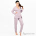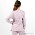 Симпатичная пижама с длинным рукавом нежного цвета "сиреневый меланж". V-образный вырез с эффектом запаха украшен ажурной полоской трикотажа. Лиф кофты с вытачками декорирован вышивкой-логотипом LB из блестящей серебристой нити. Рукава кофты и штанины брюк отделаны манжетами, что способствует плотному прилеганию. Пояс брюк на эластичной резинке не будет впиваться и причинять неудобства.