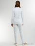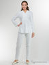 Очаровательный костюм, состоящий из туники и брюк. Рукав туники длинный, на полочках вертикальные подрезы и вставки из кружева в тон основному изделию. Застёжка-планка на пуговицах. Под грудью модель отрезная, спереди защипы, к низу слегка расширена. Брюки зауженные к низу, длинные, подходят на рост до 180 см.