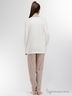 Элегантная пижама из тонкого хлопкового полотна великолепного качества, состоящая из блузы и брюк. Блуза с длинными прямыми рукавами, спереди застёжка на пуговицы, на груди накладной карман с логотипом марки "Lunatiсa". Воротник отложной из набивной хлопковой ткани коричневого цвета с рисунком. Брюки длинные зауженные к низу, подходят на рост до 180 см.