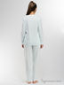 Элегантная пижама из тонкого хлопкового полотна великолепного качества, состоящая из блузы и брюк. Блуза с длинными рукавами, спереди застёжка-планка на пуговицах. Низ блузы и рукава отделаны широкими трикотажными манжетами. На груди логотип марки "Lunatiсa" выполненный из страз. Брюки длинные зауженные к низу, подходят на рост до 180 см.