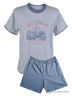 Замечательная мужская пижама для дома и отдыха. Футболка с коротким рукавом, на груди принт. Шорты по талии на резинке, карманов нет. Вырез футболки круглый под горло, отделан бейкой. Длина шорт 45 см.