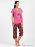Отличная пижама из тонкого слегка эластичной трикотажной ткани. Футболка с круглым вырезом и коротким рукавом декорирована принтом на полочке. Бриджи с оригинальным рисунком на резинке.