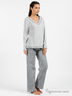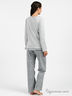 Отличная пижама из слегка эластичного хлопкового трикотажа. Лонгслив с V-образным вырезом горловины и длинным рукавом декорирован оборками. Брюки с оригинальным рисунком на резинке.