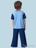 Костюм домашний для мальчиков разных возрастов. Комплект состоит из футболки и брюк свободного кроя, выполненных из высококачественного трикотажного полотна, гарантирующего идеальную посадку по фигуре. Футболка классического кроя, полуприлегающего силуэта. Рукава и кант по вырезу горловины - контрастные. На передней детали расположен тройной принт «Герои неба». Брюки комфортной посадки темно-синего цвета с поясом запакованного типа и клапаном-застежкой. В левом нижнем углу на передней детали расположен принт-надпись.