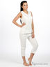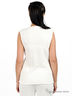 Майка прямого кроя. Застежка на три пуговицы. Подол обработан оверлоком. Полочка украшена нашивками.