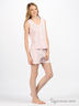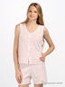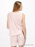Женственная и игривая трикотажная пижама нежно-розового цвета. Топ с перфорацией, застегивается на планку с пуговицами. Короткие шорты сверху посажены на резинку.