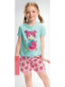 Очаровательная пижама для девочки: короткие шорты свободного кроя и футболка с красочным принтом.