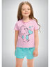 Очаровательная пижама для девочки: короткие однотонные шорты свободного кроя и футболка в полоску с милым медвежонком.