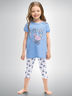 Очаровательная пижама для девочки: капри и удлиненная футболка с округлым вырезом горловины, декорированная веселым принтом.