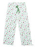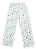 Уютная пижама из мягкого трикотажа, состоящая из футболки с длинным рукавом и брюк. Горловина футболки обработана трикотажной бейкой. Пояс на внутренней резинке, регулируется тесьмой. Края рукавов, низ футболки и низ брючин декорированы ажурной строчкой. Принтованная ткань с ярким рисунком божьих коровок.