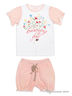 Комфортная пижама из эластичного трикотажа в горошек, состоящая из футболки и шорт. Футболка из комбинированного трикотажа имеет рукава-фонарик, которые присборены на эластичную резинку. Горловина футболки обработана трикотажной бейкой. Пояс шорт на внутренней резинке, регулируется тесьмой, а брючины шорт присборены. Очень замечательный и удобный комплект для Вашей маленькой принцессы.
