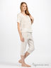 Легкая батистовая пижама с нежной ажурной вышивкой. Широкая круглая горловина на завязке. Коротки рукава. Удлиненные шортики сверху посажены на резинку.
