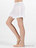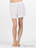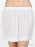 Пижама из топа и шортиков изготовлена из легкого и воздушного жатого батиста белого цвета. Топ на тонких бретельках. V-Образный вырез декорирован цветной вышивкой. Шортики посажены на резинку.