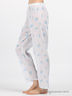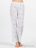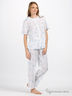 Пижама из легкого жатого батиста с нежным цветочным принтом. рубашка с круглой горловиной. Застегивается на пуговицы. Короткие рукава. Полочка декорирована ажурными вставками. Длинные брюки прямого покроя сверху посажены на резинку.