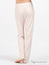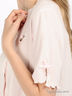Пижама нежно-розового цвета из трикотажа "лапша", легкого и приятного на ощупь. Рубашка с короткими рукавами и круглой горловиной. Застегивается на пуговицы. Украшена вышивкой и маленькими розочками. Брюки прямого покроя сверху посажены на резинку.