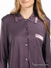 Пижама из очень нежного, струящегося, эластичного материала с легким элегантным блеском. Отложной воротник с атласным кантом. Длинные рукава. Застегивается на пуговицы. обтянутые атласном. На полочке накладной карман. Штаны сверху посажены на резинку. Восхитительно комфортная и элегантная модель.