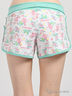 Топ с бантиками на плечах, с застёжкой на кнопки, внизу собран на резинку. На левой поле накладной кармашек с бантиком, на груди аппликация и вышивка шёлковыми нитями, на спинке принт. Шорты на широкой резинке, с отворотом в виде рюши, детали и карманы отделаны кантами, на поясе шёлковый бантик.