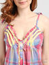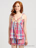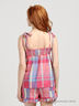 Топ на завязках, шорты на резинке с карманами. Отделка - шитьё. В верхней части спинки проложены ряды тонких резиночки для облегания.