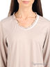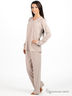 Детали: кофта - V-образный вырез и манжеты декорированы вставками из бархатистого материала и оборками; брюки посажены на резинку
