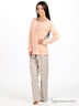 Детали: кофта с длинным рукавом; застегивается на пуговицы; декорирована стразами; брюки посажены на резинку; завязываются на атласную ленту; декорированы оригинальным принтом