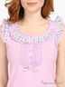 Топ с застёжкой на пуговках, обшит рюшами из шитья. Шорты и брюки из бязи, на резинке.