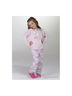 Лонгслив с цельнокроеными рукавами, на плече бант из атласной тесьмы, на груди принт, на боках ряды рюшей. Прямые брюки.
