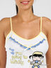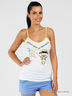 Топ на регулируемых бретелях украшен аппликациями и набивкой.