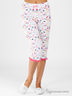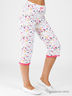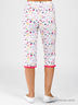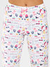 В пояс брюк вставлена резинка. Изделие украшено принтами.