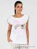 Футболка прямого силуэта с округлым вырезом горловины и коротким рукавом. Полочка декорирована аппликациями, нашивками и вышивкой.