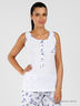 Топ прямого силуэта с округлым вырезом горловины. Застежка на пять пуговиц на полочке. Нагрудный кармашек