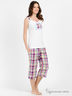 Очаровательная женская пижама состоит из эластичной майки и укороченных брюк. Майка с овальным вырезом горловины, без рукавов, полочка украшена принтом, аппликациями и прострочкой. Яркие брюки с эластичной резинкой в поясе, по бокам расположены открытые карманы. Продукция бренда Relax mode - это отличный вариант для тех, кто любит комфорт и качество.