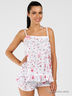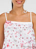 Топ с округлым вырезом горловины на завязывающихся лямках. Застежка на три пуговицы на полочке. Украшен принтами и нашивкой.