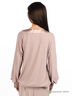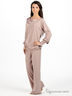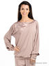Детали: кофта - длинный рукав с атласной манжетой; широкий круглый вырез; снизу дополнена резинкой; декорирована пайетками и атласными вставками; брюки посажены на резинку