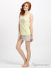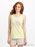Трикотажный топ с принтом на груди и батистовыми бантиками на плечах. Шорты и брюки на резинке, на поясе бант.